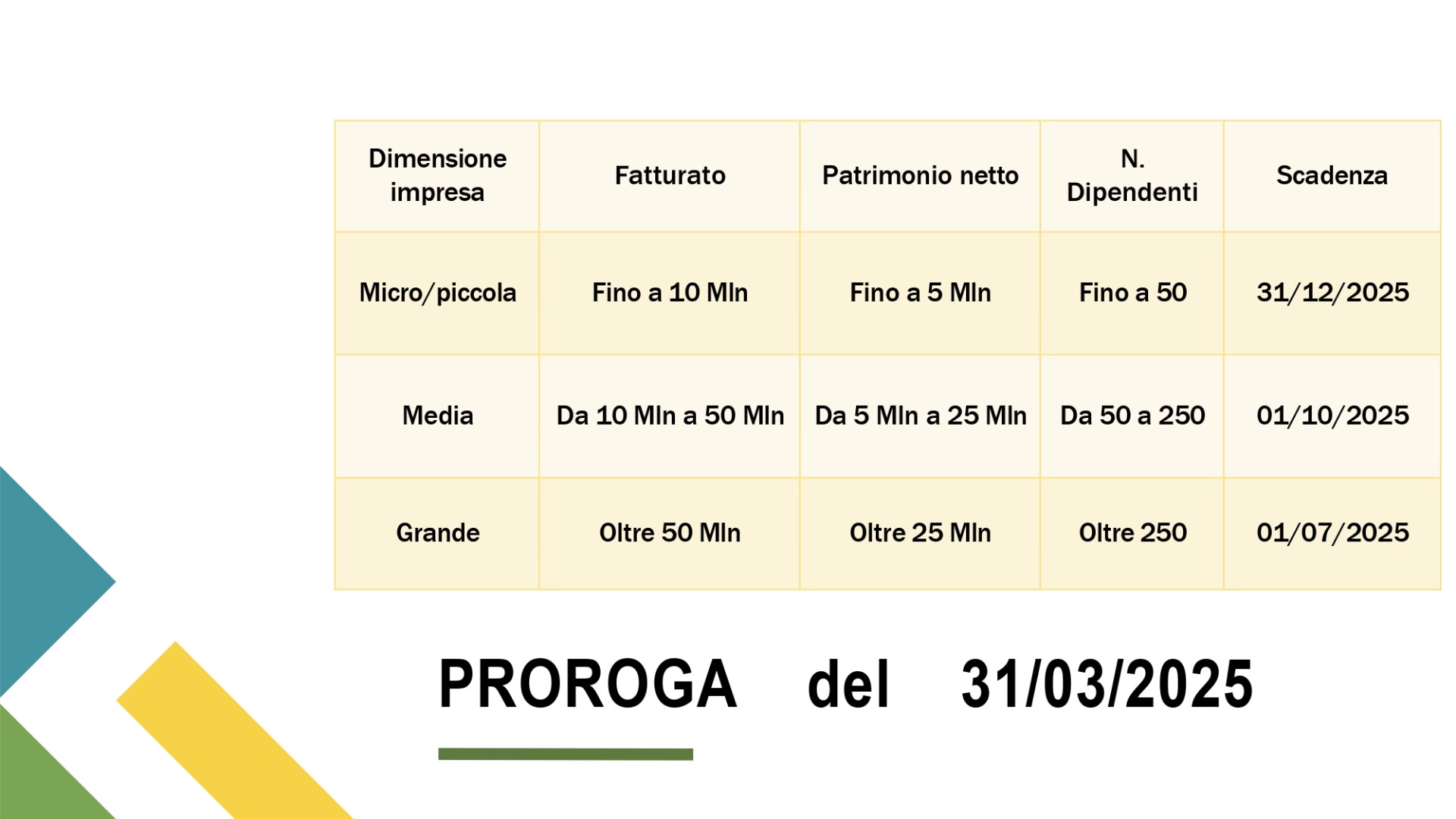 Inizialmente il termine ultimo entro cui le imprese erano tenute ad assicurarsi era il 31 marzo 2025.